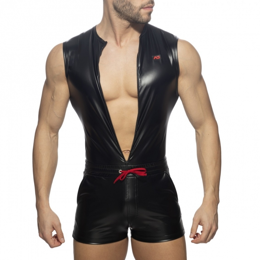 Le combi short RUB BODY de la marque AD Fetish est conçu avec :