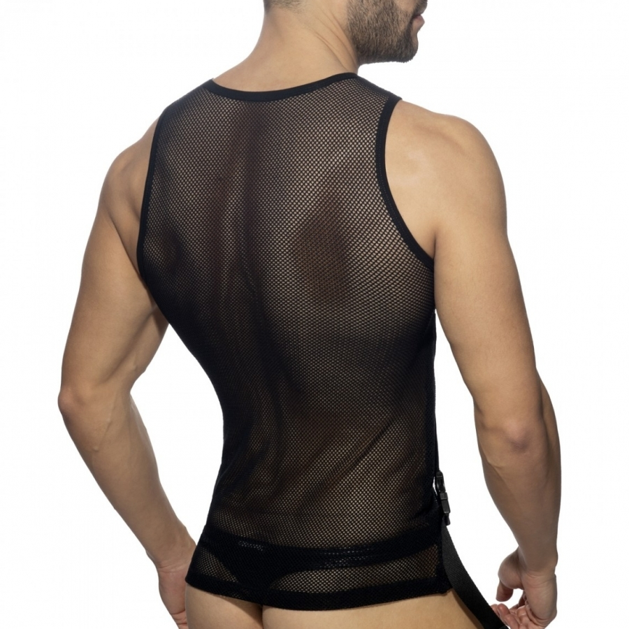 Le débardeur MESH DOUBLE CLIP de la marque AD Fetish est un haut masculin créé avec un tissu filet.