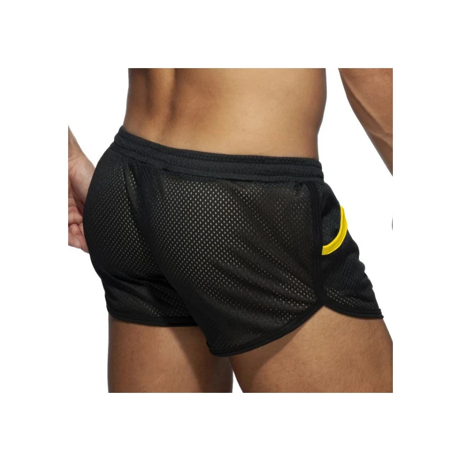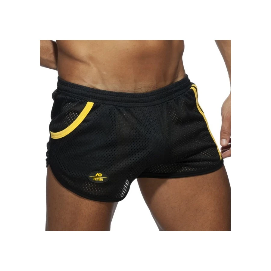 Le short POCKET ROCKY jaune est présenté sur le gay shop par la marque espagnole AD Fetish, bien connu des amateurs de soirées fétiches.