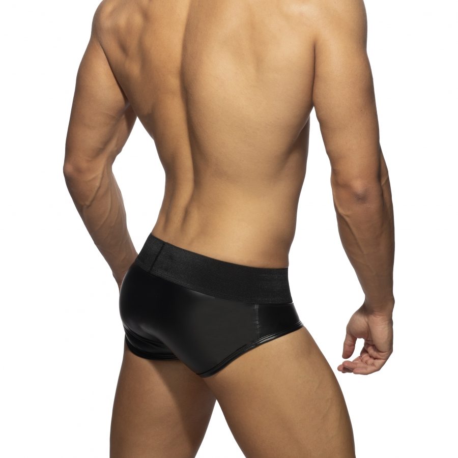 Le slip FRONT ZIP RUB de la marque AD Fetish est un sous-vêtement conçu avec :