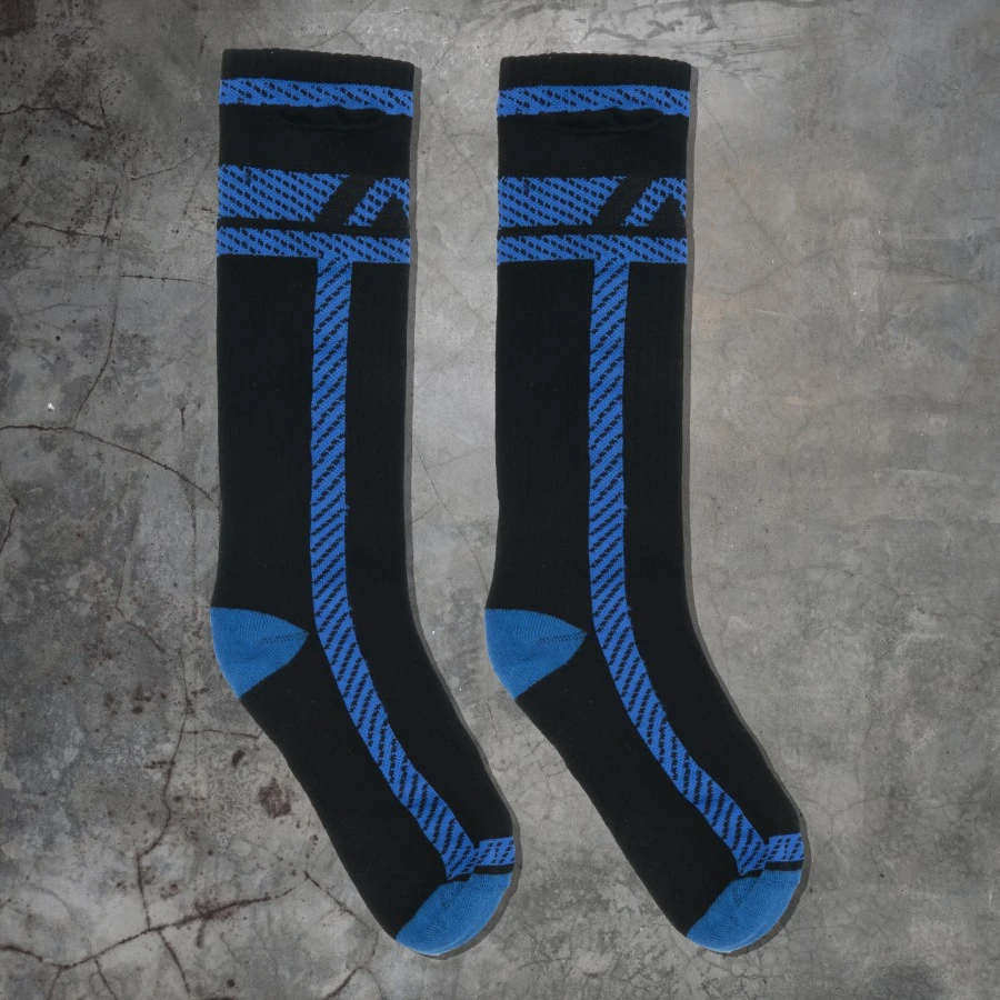 Cette paire de socks POCKETS FETISH de la marque AF Fetish est composée de deux chaussettes noires et bleues.
