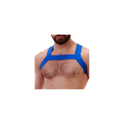 Ce harnais est composé de bandes de 4cm de large avec une forme carrée sur le devant et croisée à l’arrière