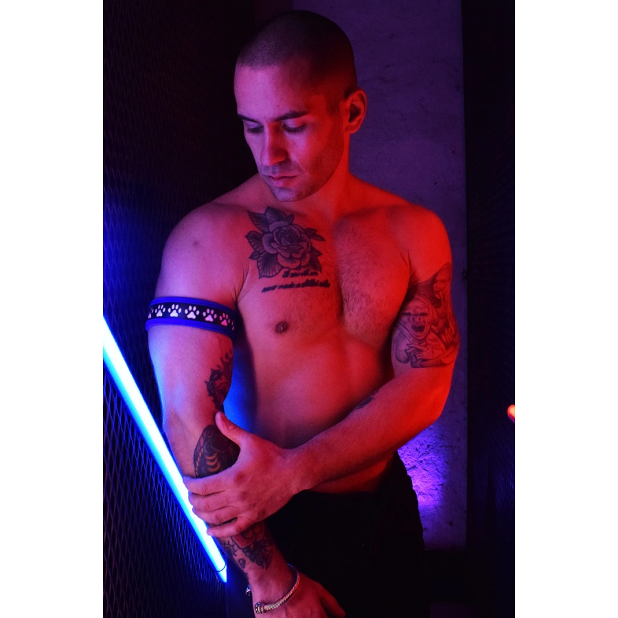 Ce brassard lumineux POUNDTOWN est composé de pattes de chiens qui s’éclairent avec LED.