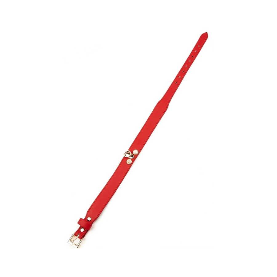 Le collier rouge intense comporte deux perles ainsi qu’un fin anneau doré. Style assuré ! Il mesure 2.3cm de large et le tour de cou ajustable va de 33.6 à 42cm.