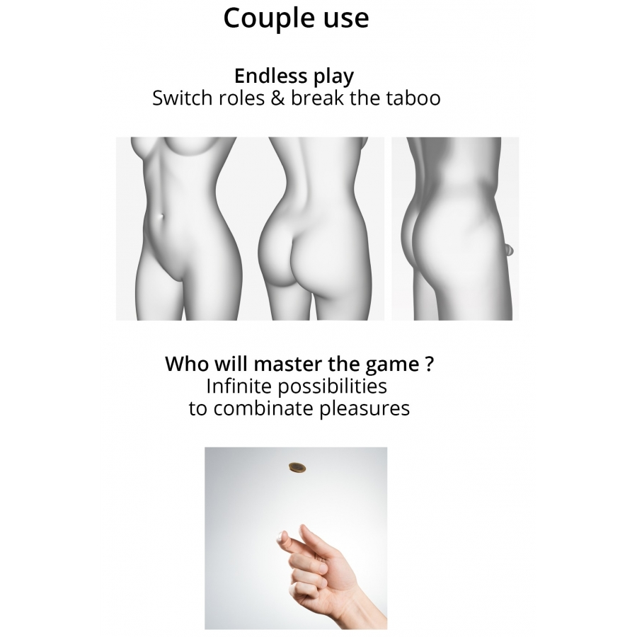 Il s’utilise comme un gode ceinture sans harnais grâce au plug vaginal de 4cm de largeur.
