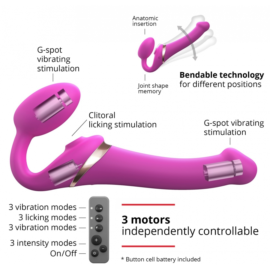 Avec 3 moteurs indépendants, 3 rythmes et 3 vitesses de vibrations (avec télécommande).