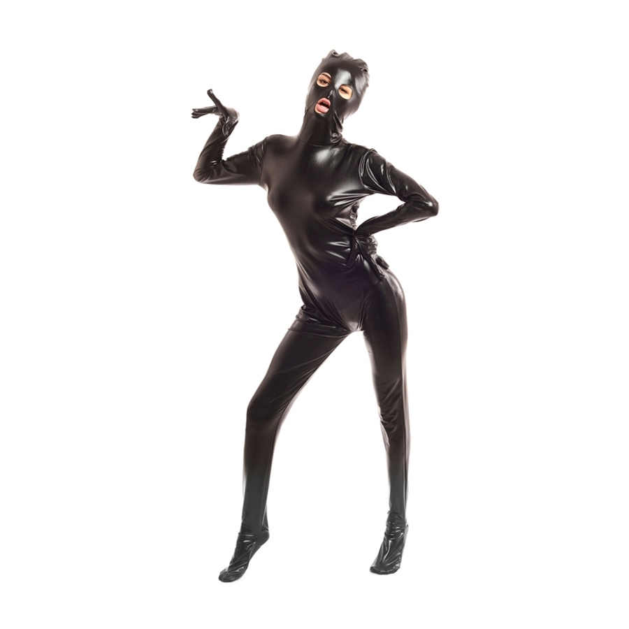 Elle est élastique et intégrale, hormis les trous pour la bouche et les yeux. Réalisée en tissu fin avec des reflets brillants, cette combinaison est idéale pour vos jeux de soumission-domination. Faites monter l’excitation !