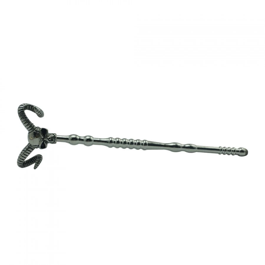 L’accessoire urétral possède une extrémité en forme de tête de mort avec des cornes de béliers.