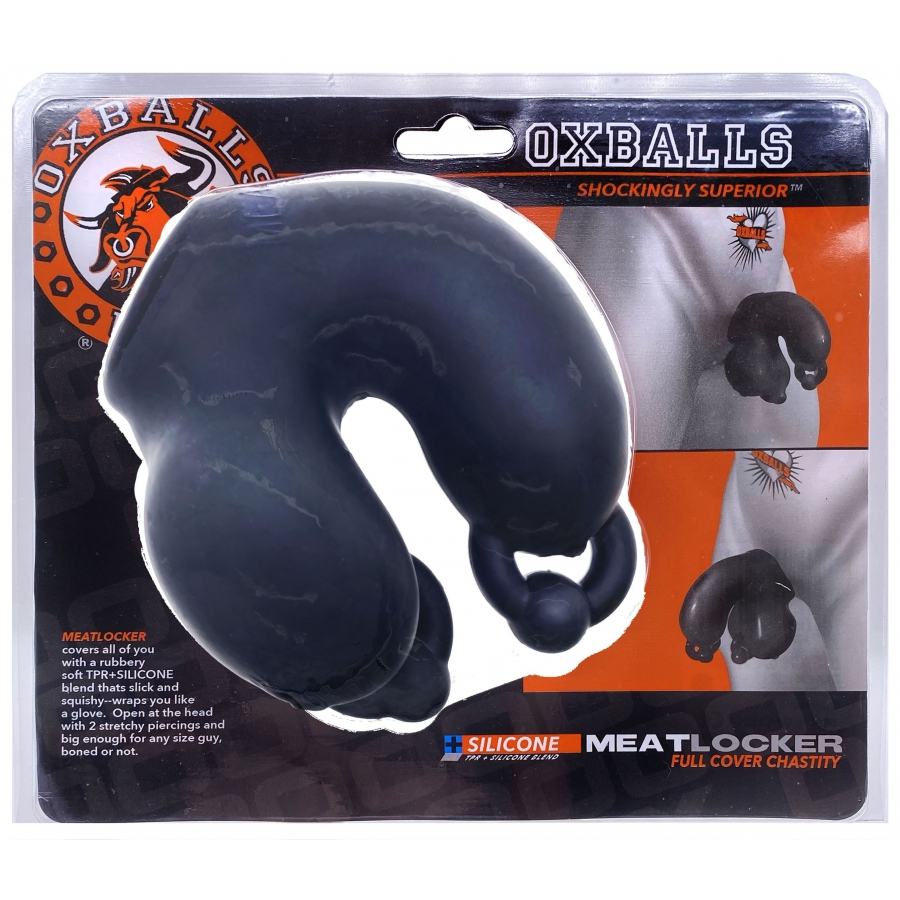 Cette gaine de pénis Oxballs de la gamme MEATLOCKER est un accessoire original. Il est conçu avec une forme courbée accueillant le pénis et les testicules.