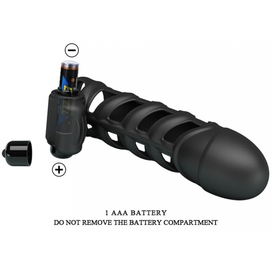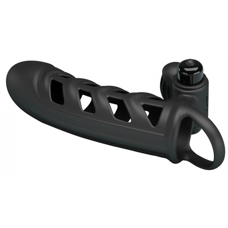 Cette gaine de pénis vibrante SLEEVE II est proposée sur le shop par la marque Pretty Love. Elle est composée d’une surface ajourée et d’un vibro au dessus.