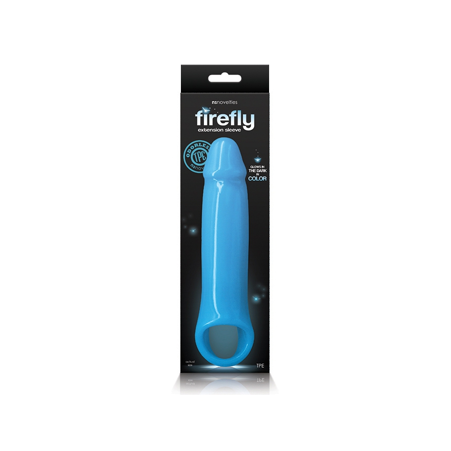 Cette gaine pour pénis brille dans le noir. Elle est proposée sur le sex shop gya dans la gamme des sextoys Firefly.
