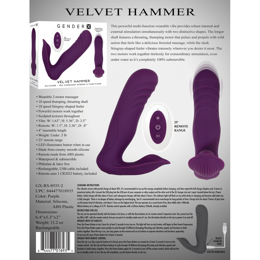 Ce sextoy VELVET HAMMER de la marque Gender X est conçu avec :