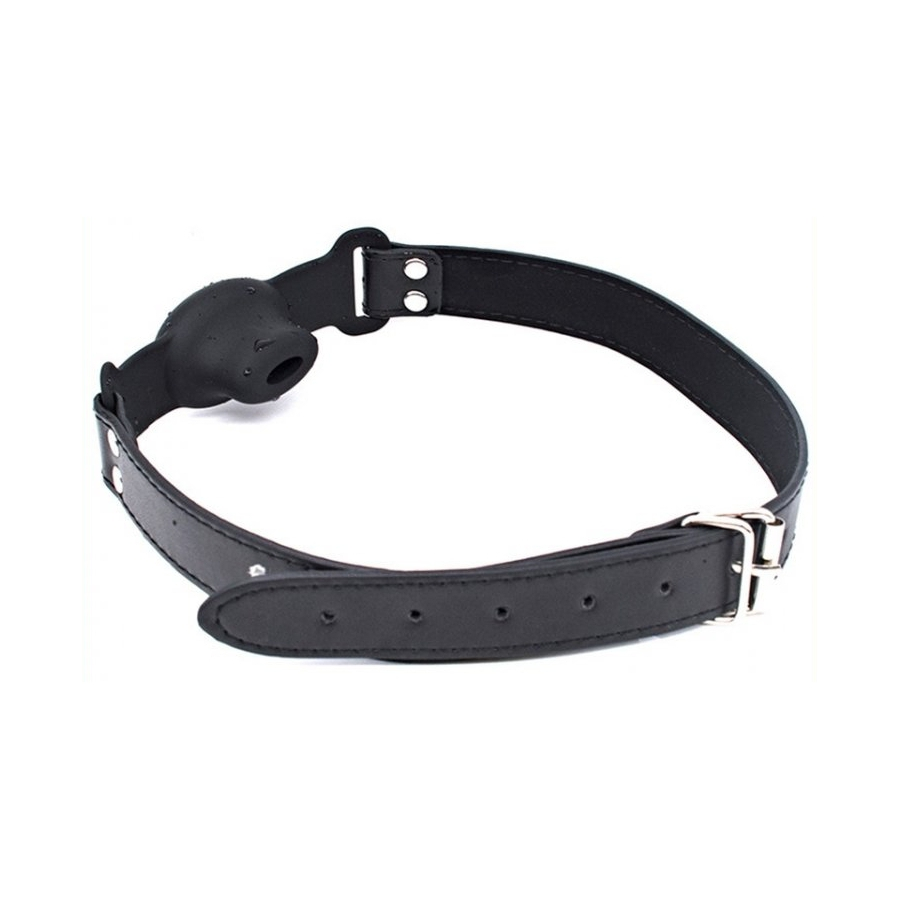 le baillon est en silicone avec une ouverture permettant de respirer et de faire baver…