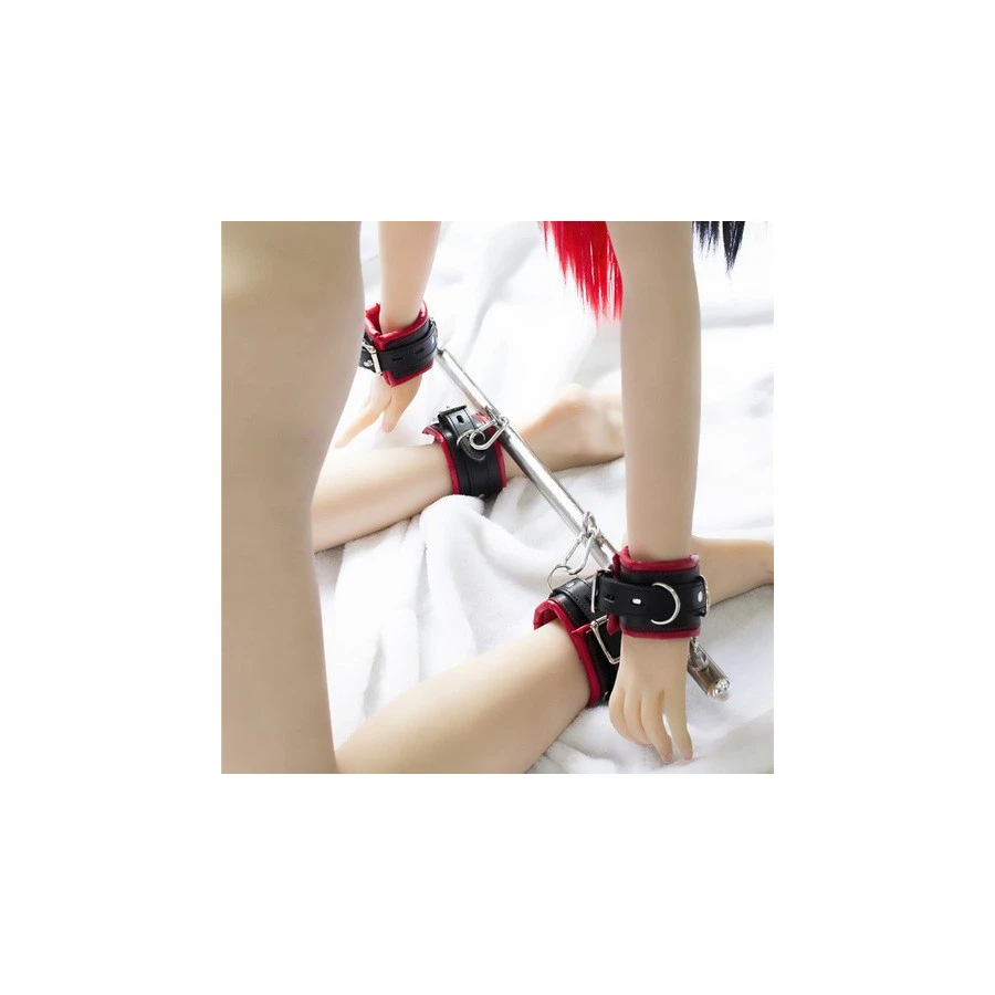 – de 4 menottes en cuir renforcées et agréables à porter tout confort attachées sur la barre.