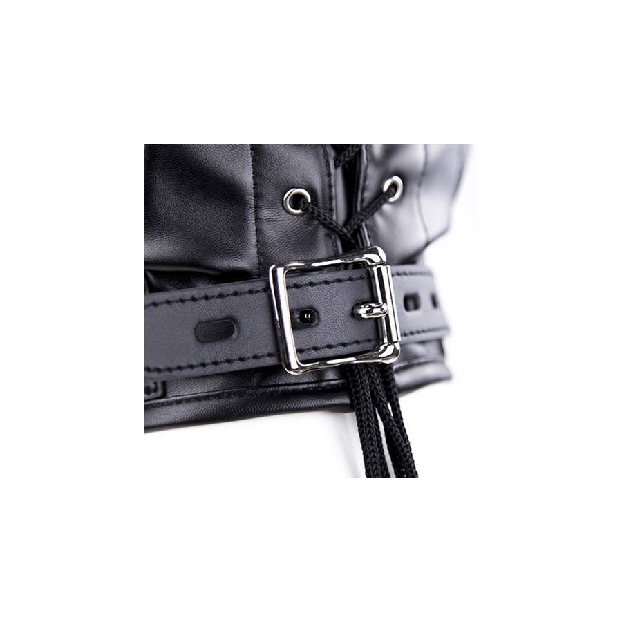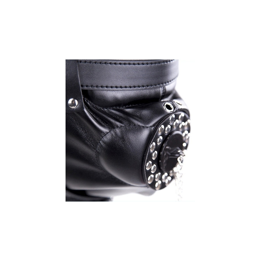 Cette cagoule SM est composée d’éléments qui isolent complètement le partenaire dans une bulle de soumission.