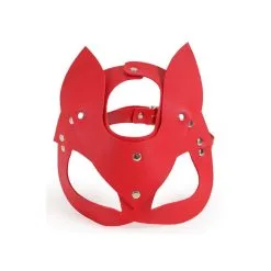 Ce masque de cosplay rouge a une forme de tête de lapin.