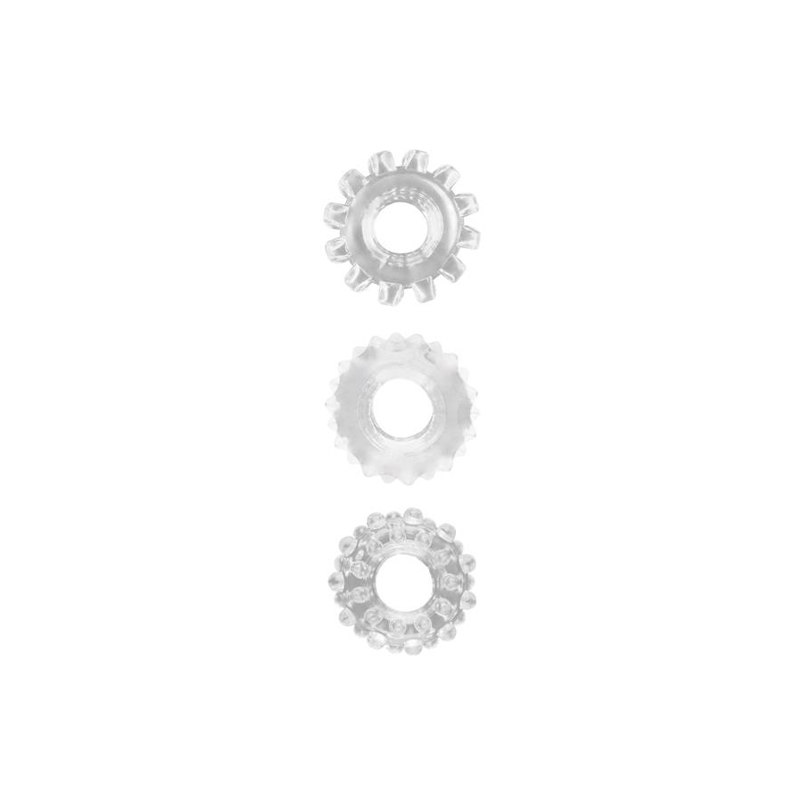 Ce lot est composé de 3 cockrings souples transparents avec des formes variées et funs.