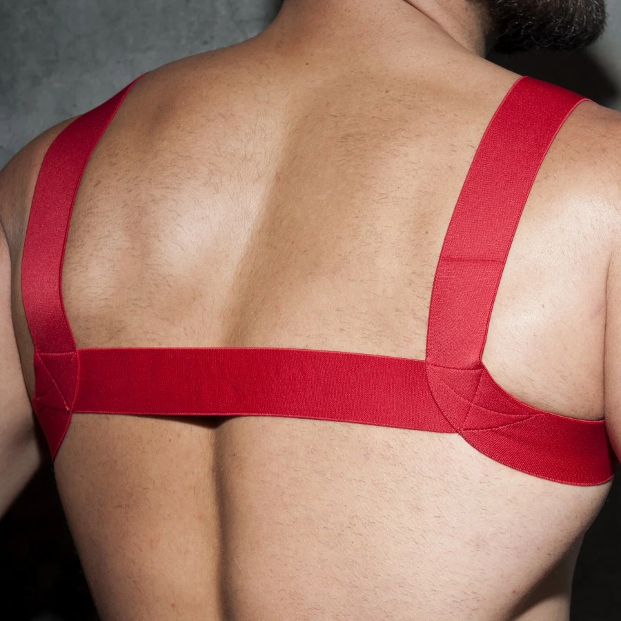 Ce harnais élastique AD FETISH de la gamme Basic est proposé sur le shop dans sa version Rouge.