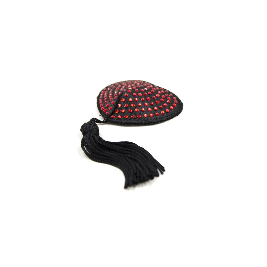Ces cache-tétons COEUR sont conçus avec cette très belle forme de coeur et le pompon de 9cm de longueur. Ils sont très élégants avec les petites perles rouges brillantes à l’intérieur, en contraste avec le noir.