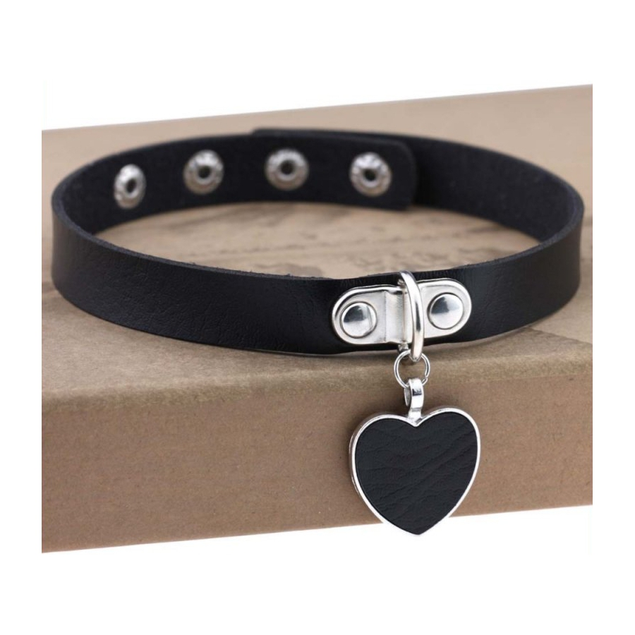 Ce ras de cou PUNK HEART noir est un bijou conçu avec une largeur fine de 1.6cm et un pendentif en forme de coeur.
