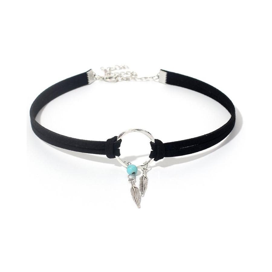- l’anneau central en métal avec pendentifs en forme de plume et bille bleue.