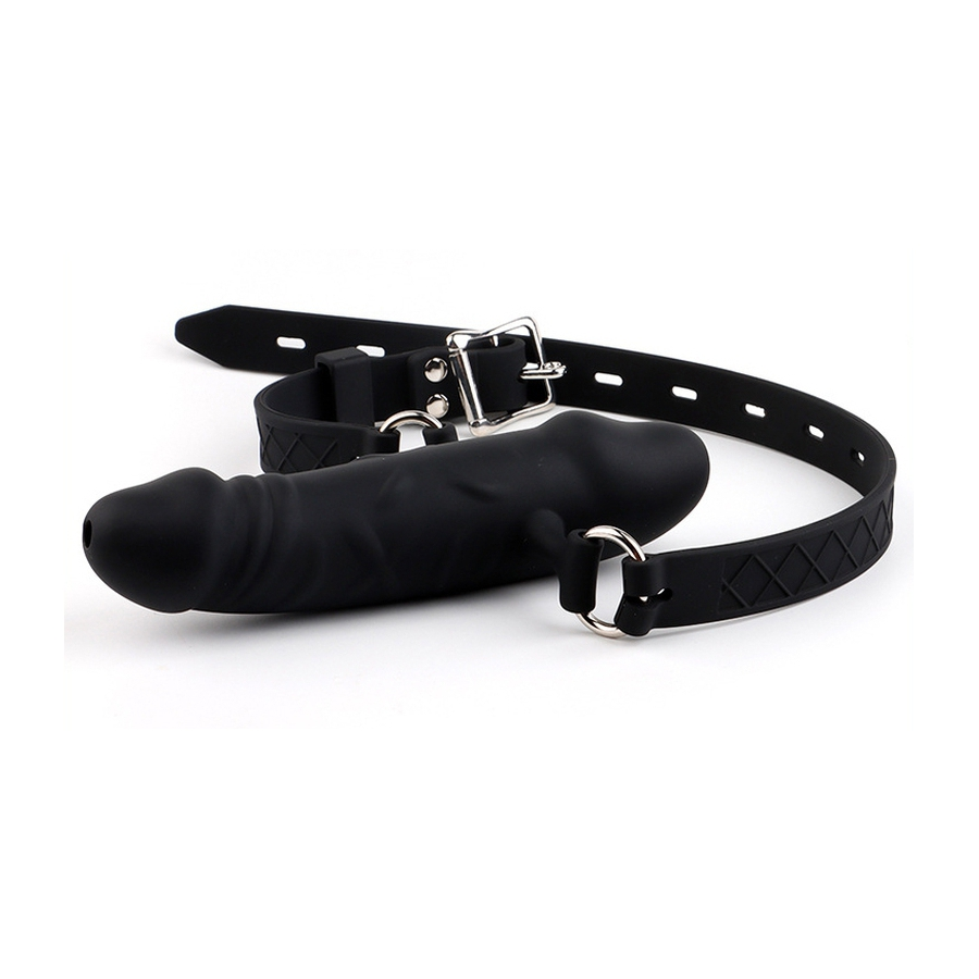 Ce bâillon gode en silicone ORAL DICK est un accessoire SM conçu avec :