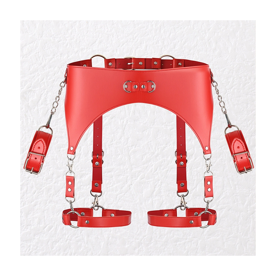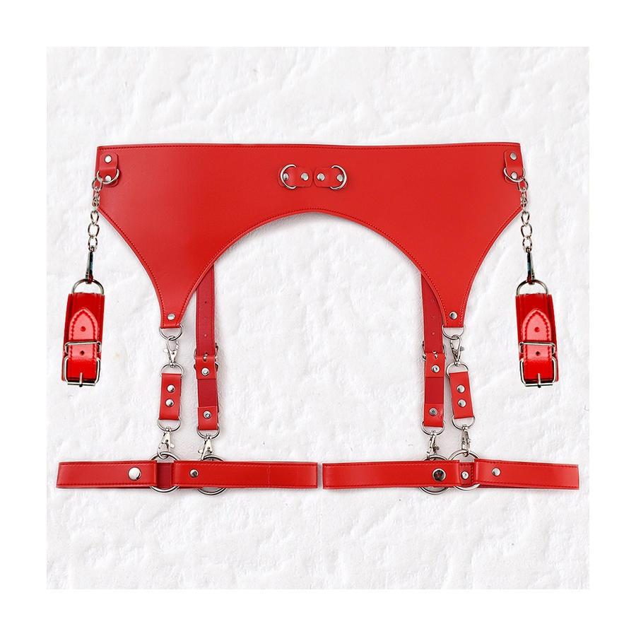 KinkHarness Ceinture Porte-Jarretelles Et Menottes Rouge