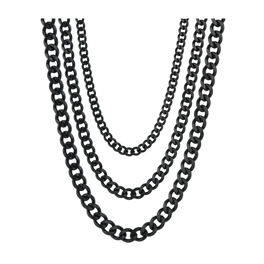 Malejewels Collier Fin En Métal CUBAN 7mm Noir