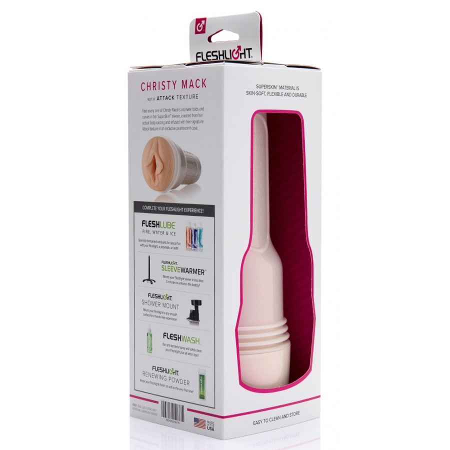 Le masturbateur CHRISTY MACK simule un vagin réel comme ses pairs de la collection Fleshlight Girl. Il est moulé sur celui de la célèbre actrice X Christy Mack. Il se compose de :