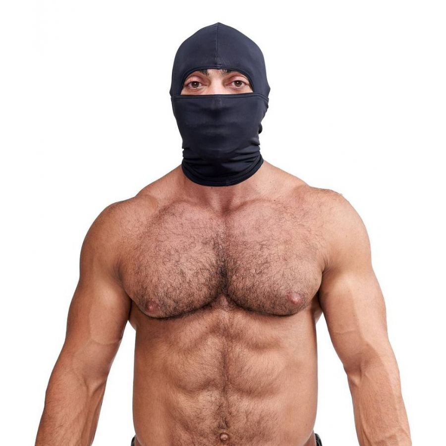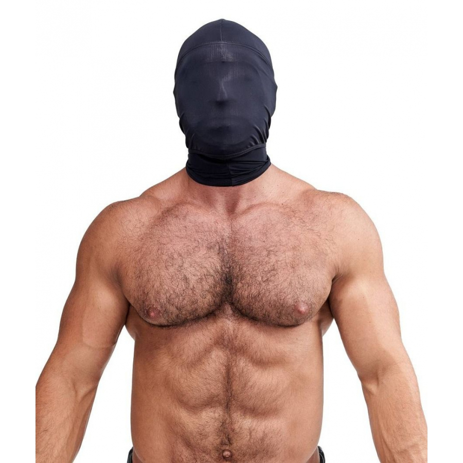 Cette cagoule en lycra noire est proposée sur le shop gay par la marque Mister B.