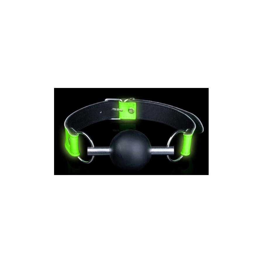 Ce bâillon boule phosphorescent de la gamme GLOW IN THE DARK est un accessoire Sm composé de :