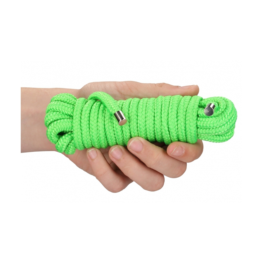 Cette corde de bondage phosphorescente GLOW ROPE est un accessoire idéal pour attacher le partenaire et s’entraîner à faire les noeuds de shibari.