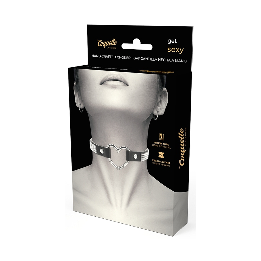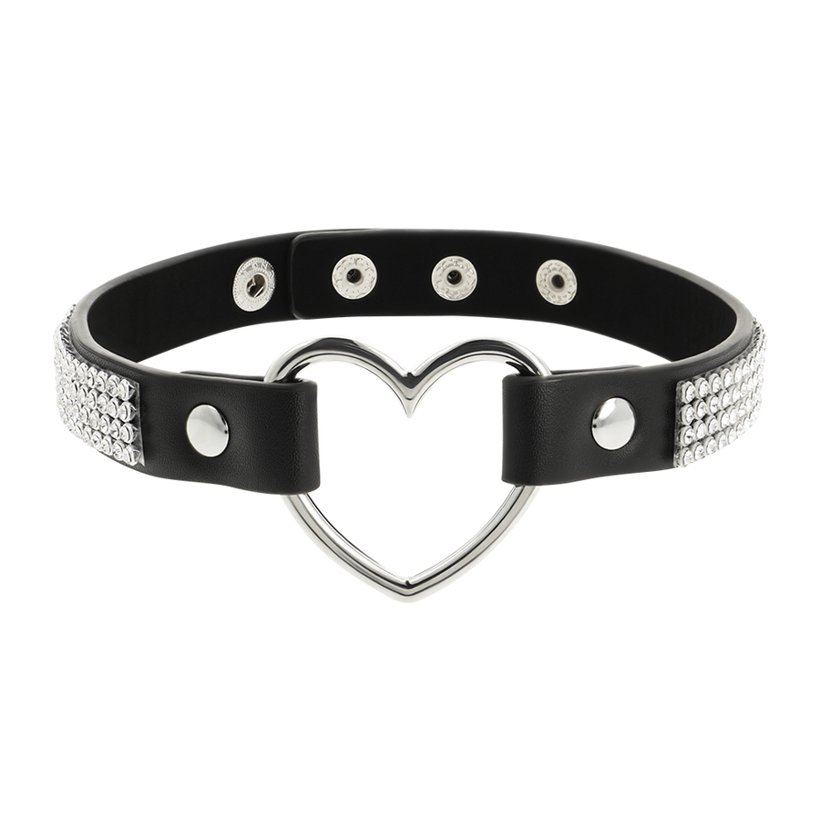 Ce ras de cou de la marque Coquette est conçu avec un coeur en métal et des strass sur les côtés.