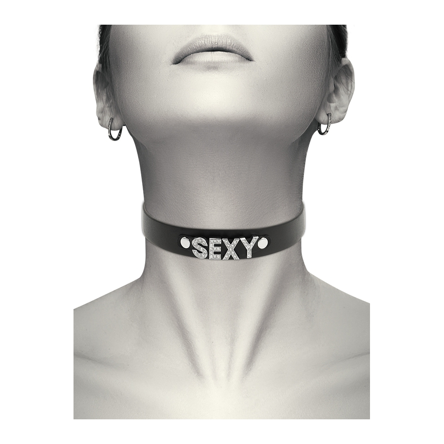 Ce ras de cou de la marque Coquette est conçu avec le mot Sexy en lettres brillantes.
