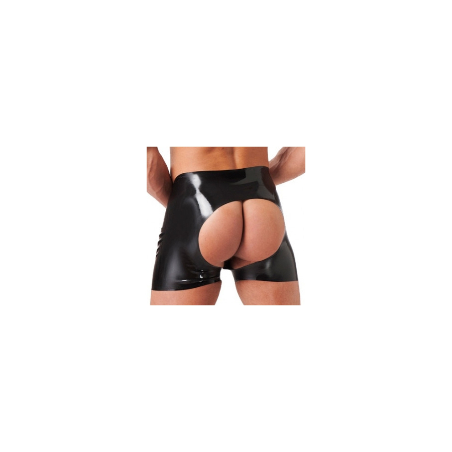 Ce short en latex proposé par la marque Rimba est un vêtement sexy ouvert derrière. Il laisse les fesses découvertes et les met en valeur.