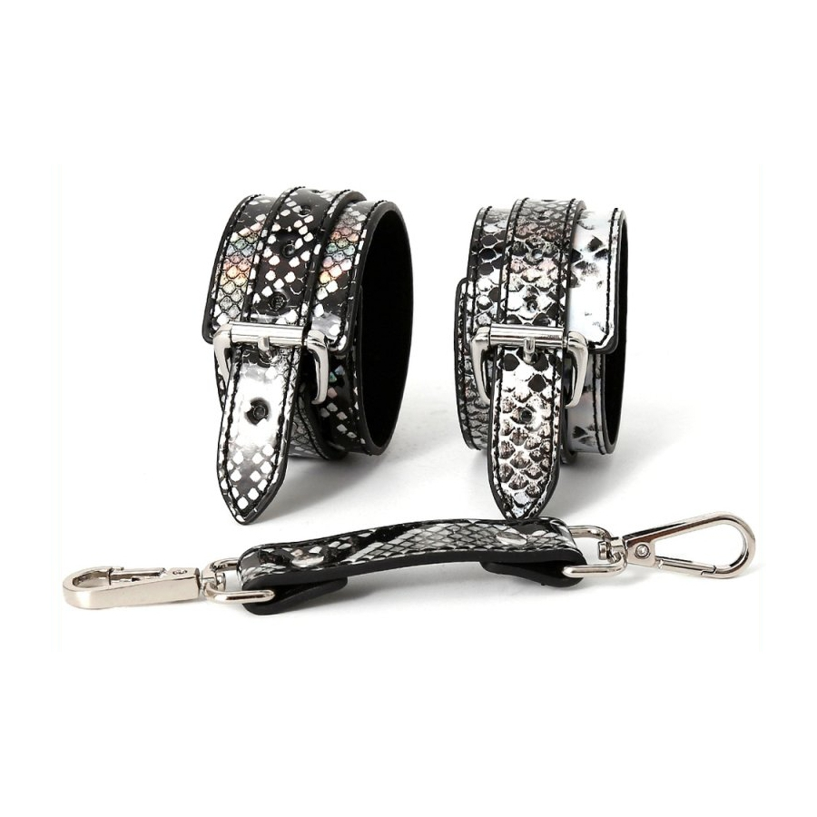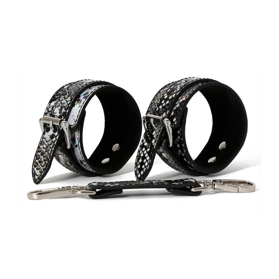 Ces menottes de poignets sont conçues avec une surface « peau de serpent ». Cela donne un style sexy pendant le jeu coquin.