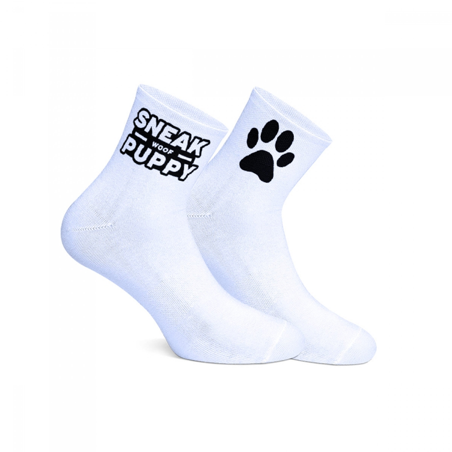 SneakFreaxx Chaussettes Courtes WOOF PUPPY Blanches