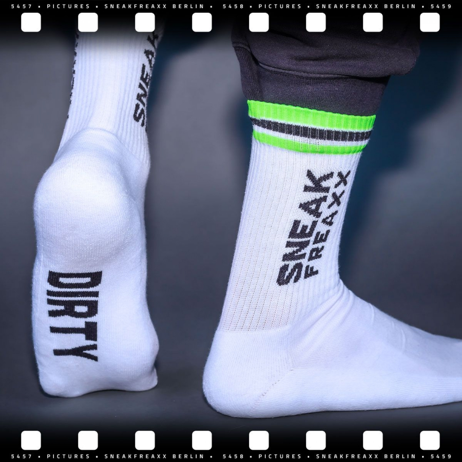 Cette paire de chaussettes DIRTY est proposée sur le sex shop gay par la marque Sneak Freaxx.