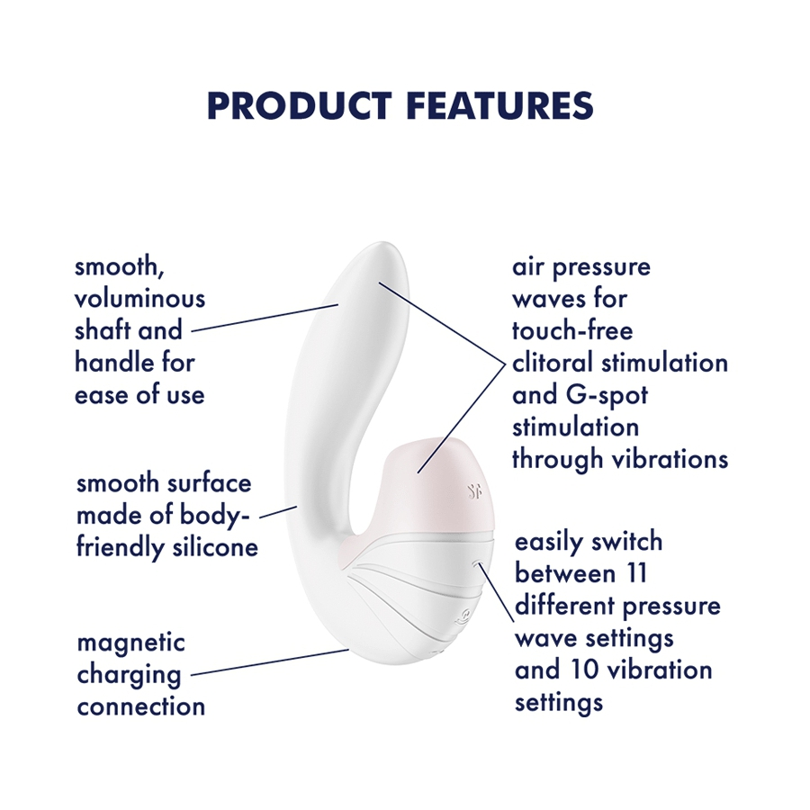 Ce stimulateur de clitoris SUPERNOVA de la marque Satisfyer est un sextoy composé de :