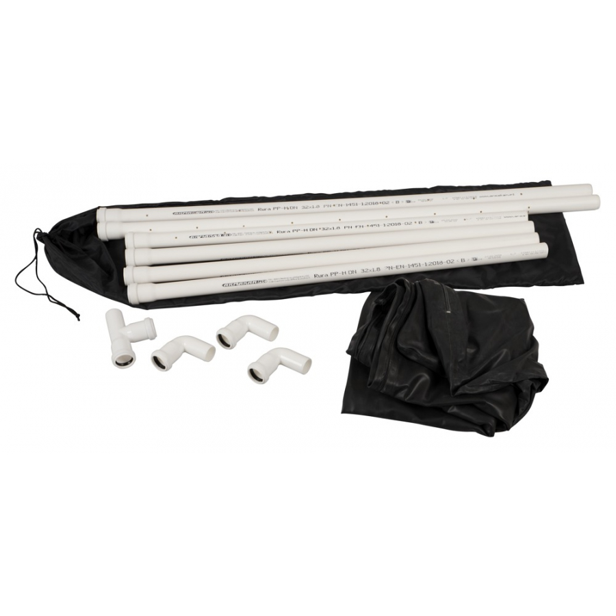 - la structure en tubes de plastiques pour tendre le latex et faciliter son utilisation.