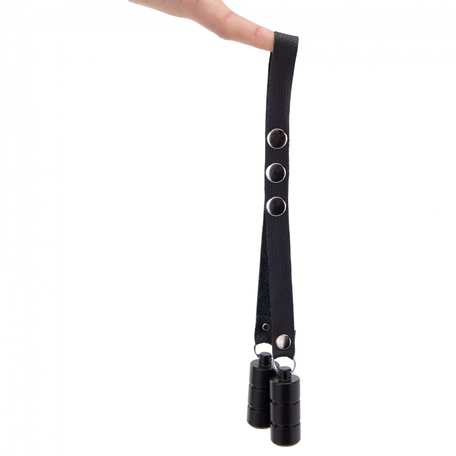 Il se place au dessus des bourses et permet de les étirer vers le bas grâce aux deux poids de 100 grammes.