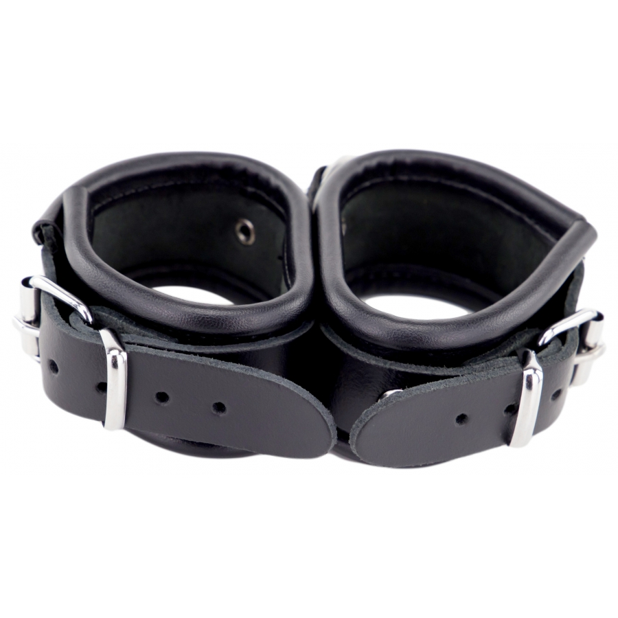 Double menotte de maintien en cuir avec sangle tissu et anneau métal