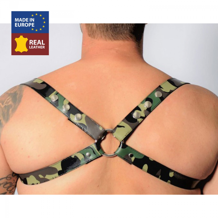 - sangles en cuir de 2.5cm de large avec un motif camouflage