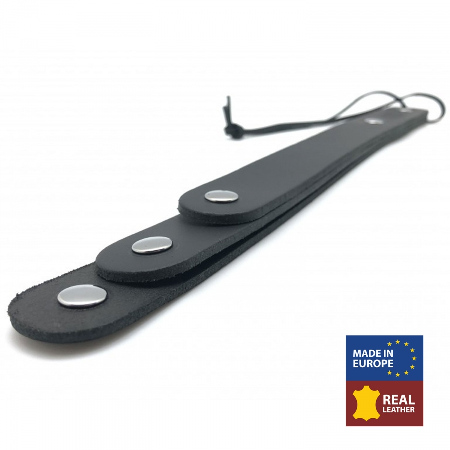 Cet accessoire SM de la marque The Red est un paddle en cuir composé de 3 lanières superposées qui viennent claquer et rendre l’effet plus intense sur la peau.