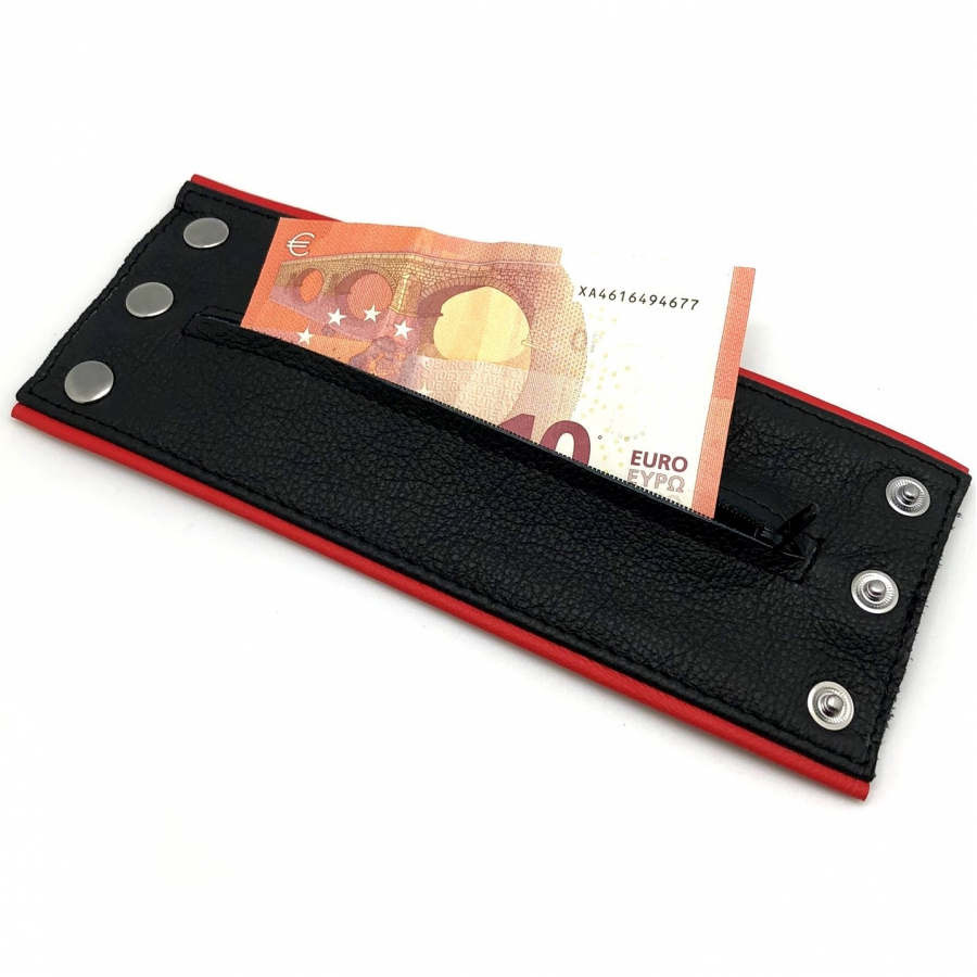 Bracelet de force en cuir avec zip extérieur pour ranger ton argent et afficher tes préférences !