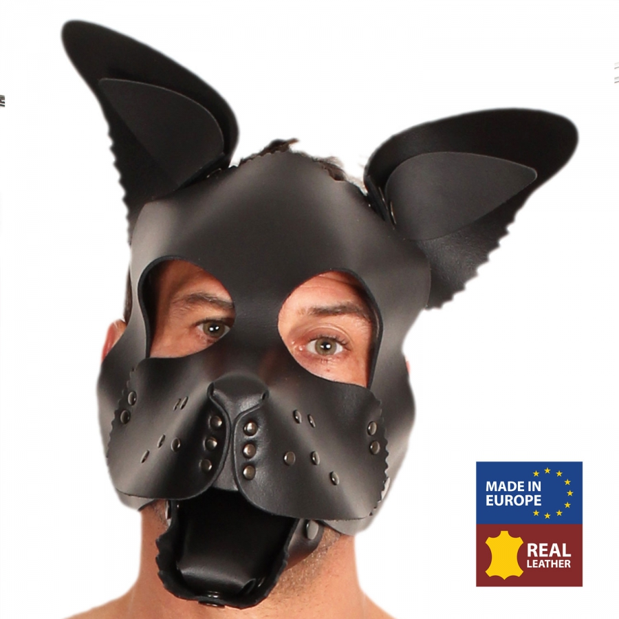 Le masque de dog training est fabriqué entièrement en cuir de vache. L’aspect extérieur est lisse et brillant. L’intérieur reste en cuir brut.