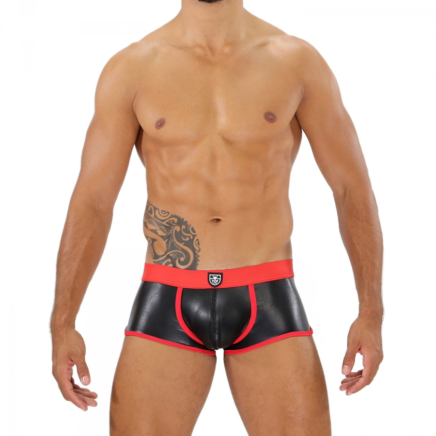 Le boxer homme de la marque TOF Paris est proposé sur le shop gay dans sa version noir-rouge. Il s’agit d’un sous-vêtement de la gamme FETISH BOXER conçu avec un tissu fétiche légèrement brillant.
