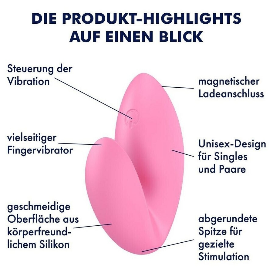 Ce vibromasseur LOVE RIOT de la marque Satisfyer se tient avec les doigts et permet de stimuler les zones les plus plus érogènes.