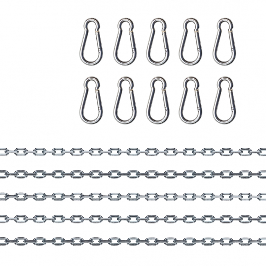 Set de 5 chaînes en métal avec les 10 mousquetons associés.