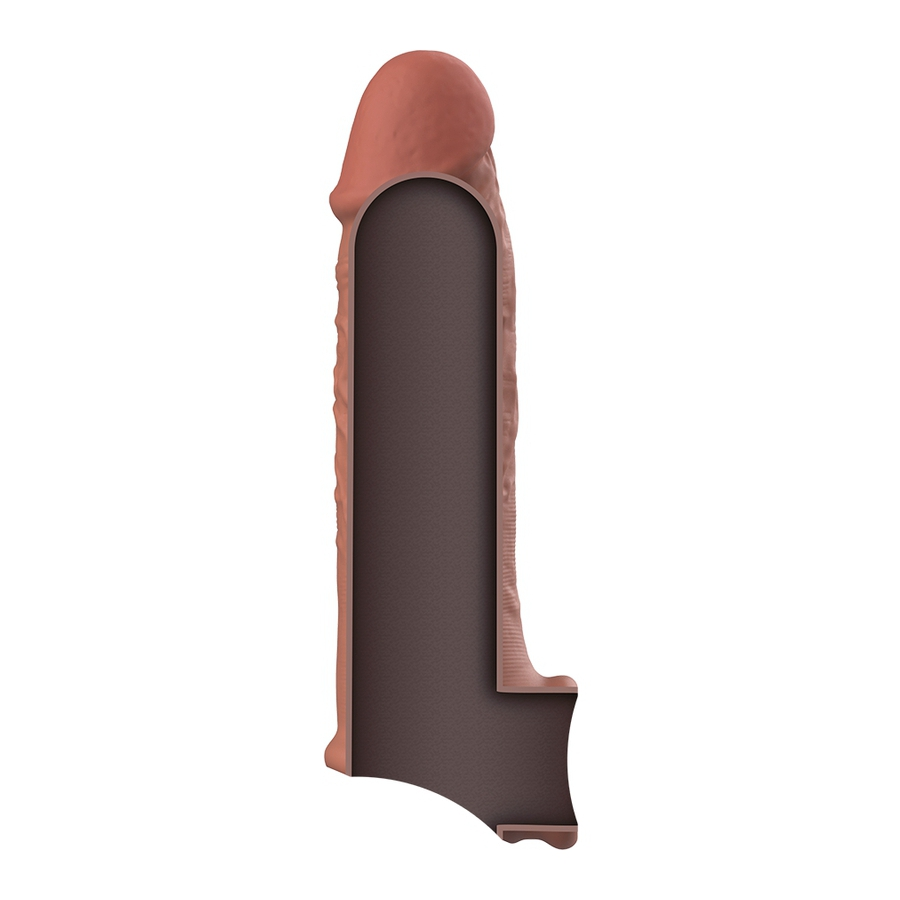 Cette gaine de pénis VIRIL XL est ici dans sa version V9. Elle permet de donner plus de volume au sexe grâce à :